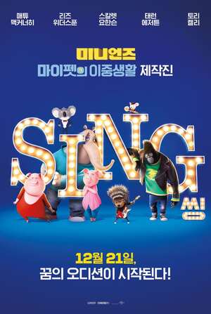 씽(Sing)은 2016년 공개된 미국의 애니메이션 뮤지컬 코미디 드라마 영화이다. 일루미네이션 엔터테인먼트가 제작했으며, 3D 컴퓨터 애니메이션 뮤지컬 영화로 은하수를 여행하는 히치하이커를 위한 안내서 감독으로 잘 알려진 Garth Jennings가 맡았다. 영화 씽(sing,2016)은 최고의 가수를 뽑는 오디션에 참여한 소울 넘치는 동물들이 자신만의 꿈과 노래를 찾아가는 과정을 그린 뮤지컬 애니메이션이다. 주인공이자 한때 잘 나갔던 문(Moon) 극장의 주인 코알라 버스터 문(매튜 맥커너히)은 극장을 돼 살리기 위해 대국민 오디션을 개최한다. 하지만 한 순간의 실수로 우승 상금이 1,000달러(약 100만 원)에서 10만 달러(약 1억 원)로 바뀌게 되고 이로 인해 전국 각지에서 동물들이 몰려와 오디션에 참가하게 된다. 25남매를 둔 슈퍼맘 돼지 로지타(리즈 위더스푼), 남자친구와 록스타의 꿈을 키우는 호저 애쉬(스칼렛 요한슨), 범죄자 아버지를 둔 고릴라 조니(태런 에저튼), 무대가 두렵기만 한 코끼리 소녀 미나(토리 켈리), 그리고 오직 상금이 목적인 생쥐 마이크(세스 맥팔레인)까지! 놀라운 실력을 소유한 동물들이 대거 참가하면서 오디션은 방송까지 타며 오디션의 규모가 커지게 된다. 꿈을 펼치기 위해 한 자리에 모인 이들은 자신들의 무대를 시작된다. 이에 많은 관심이 몰리는 모습에 버스터 문은 좋아하지만 우승 상금이 잘못 공고되어 나갔다는 사실을 알게 되어 크게 당황한다. 그러나 버스터 문은 참가자에게 알리지 않고 오디션을 진행하게 된다. 그러나 비밀을 금세 알려지게 되고 많은 참가 잘들이 떠나고 결국 최종 선발된 로지타, 애쉬, 조니, 미나, 마이크가 최종선발된다. 그러나 최종 상금을 줄 수 없는 문은 여러 투자자들에게 돈을 빌리려 하지만 극장의 상황을 아는 투자자들은 빌려주지 않는다. 그 와중에 극장이 무너지기까지 하며 절망한다. 그러나 오디션 참가자들이 극장을 살리기 위해 생방송 오디션을 하며 상금을 모으려고 준비를 하며 임시 극장도 함께 힘을 모아 만든다. 악재 가운데 상금을 못 받을 거라는 걸 알지만 공연을 준비한 노력과 가족들을 위해 공연을 시작한다. 무너진 극장의 현장을 촬영 온 뉴스로 인해 그들의 공연 생방송으로 중계가 되어 관객이 모이게 되었고 공연은 성공적으로 끝나게 된다. 이후 문 극장은 재투자를 받아 지역을 대표하는 극장으로 다시 오픈하며 영화는 막을 내린다.